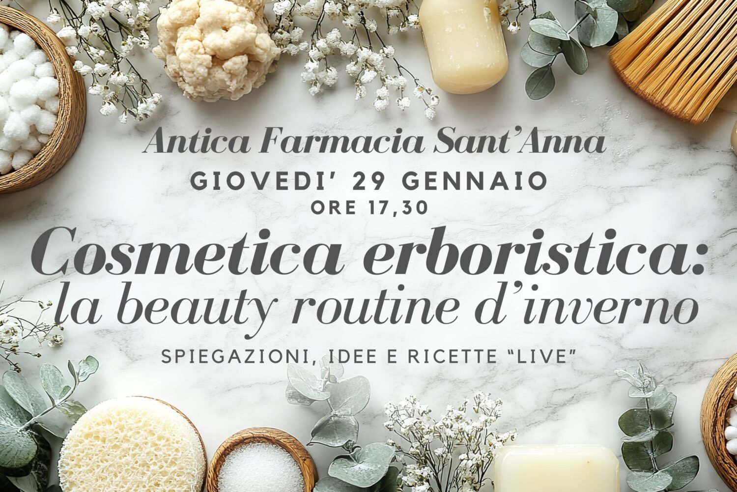 • Ricette realizzate “live”, da provare a replicare a casa vostra, per prendersi cura della pelle di viso, mani e corpo che in inverno è tipicamente soggetta a sbalzi termici, sottoposta a disidratazione, secchezza e opacizzazione.