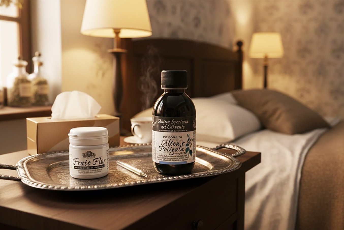 Quando l’influenza attacca naso, gola e bronchi con tosse, catarro e calo di voce, la nostra Pozione di Altea e Poligala composta è l’integratore alimentare specifico: la radice di Altea esercita un’azione emolliente e protettiva sulle mucose irritate; la Poligala e il Timo aiutano a fluidificare le secrezioni favorendo l’espettorazione; gli oli essenziali di Eucalipto e Pino mugo donano un sollievo balsamico immediato. Questo integratore alimentare dalla formula centenaria inoltre supporta la regolarità del processo di sudorazione, favorisce il rilassamento e la regolarità del sonno notturno e la regolare motilità intestinale, contribuendo a ripristinare l’equilibrio dell’organismo.